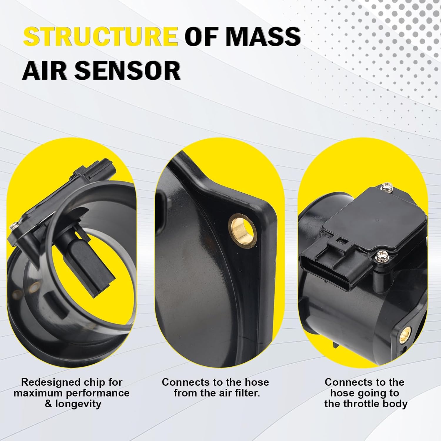 A high-quality direct-fit replacement MAF sensor that delivers accurate airflow measurement and dependable performance to keep your engine running efficiently.