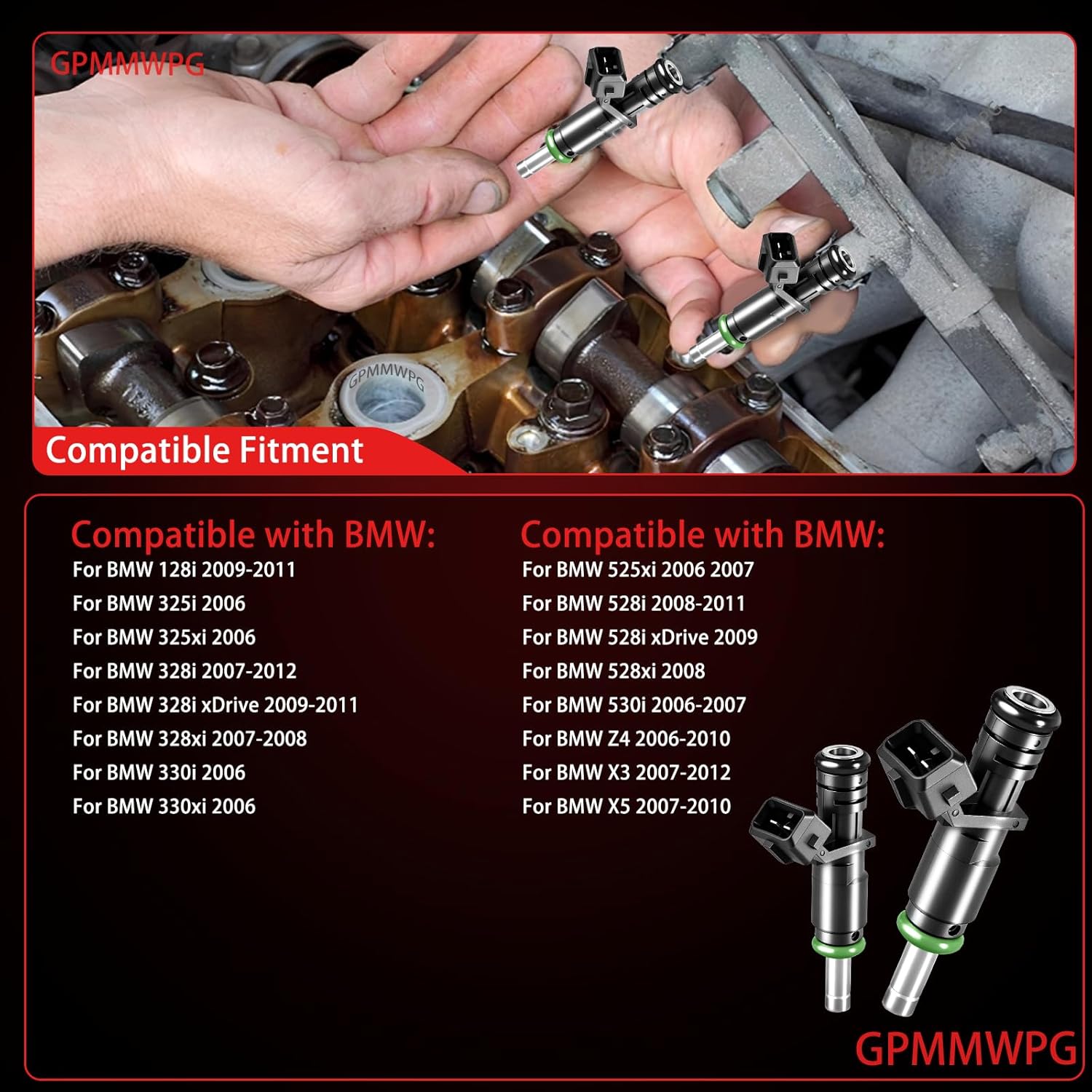 High-quality set of 6 replacement fuel injectors engineered as a direct OE match for select BMW gasoline engines. Designed for plug-and-play installation with pre-installed seals for a leak-free fit.